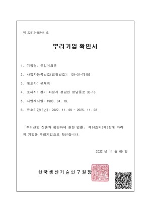 FAX : +82-31-354-6880 Email : yuilmicron@yuilmicron.co.kr